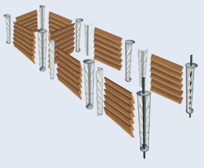Zur Aufnahme der Fichtenholzbohlen sind die Eck- und Verbindungspfosten
